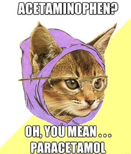 물론 병원에 갔을 때 의사나 약사한테 아세트아미노펜을 달라고 하면 알아듣겠지만 대신 파라세타몰(Paracetamol)이라고 적힌 의약품을 처방 받을 거임 (같은 거니까 그냥 받으면 됨)