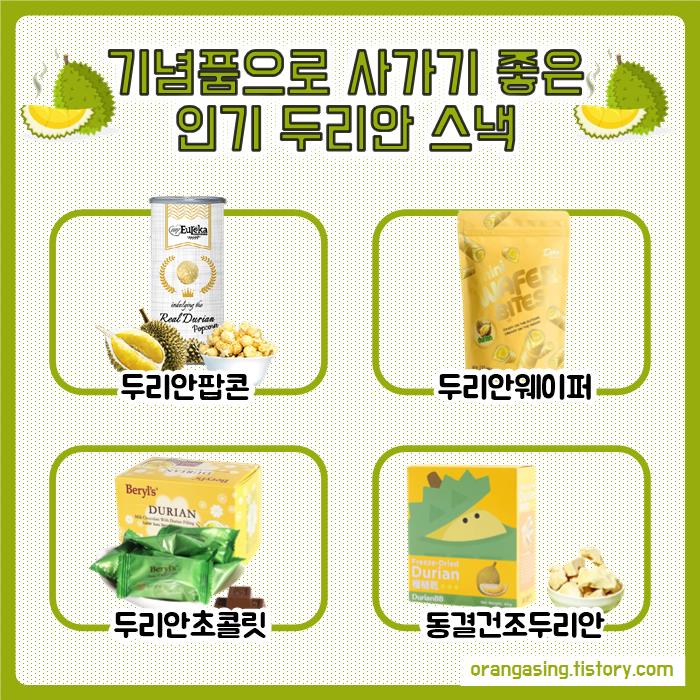 두리안팝콘, 두리안웨이퍼, 두리안초콜릿,