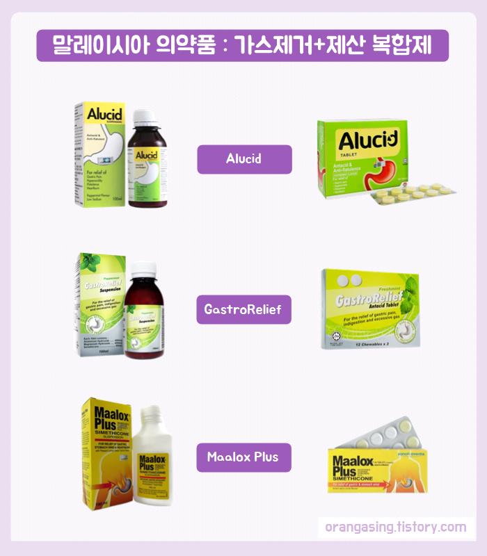 Alucid, GastroRelief, Maalox라는
