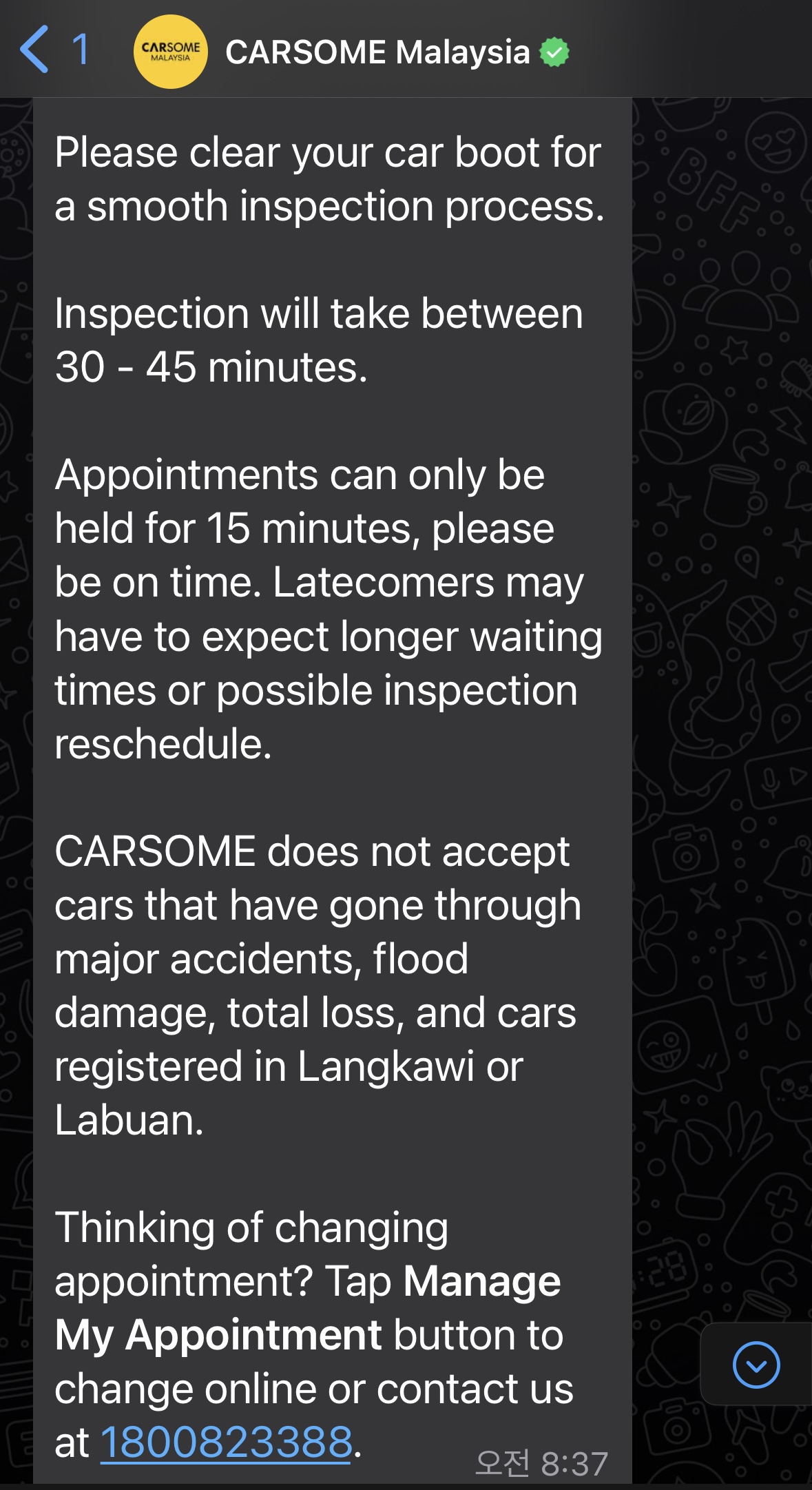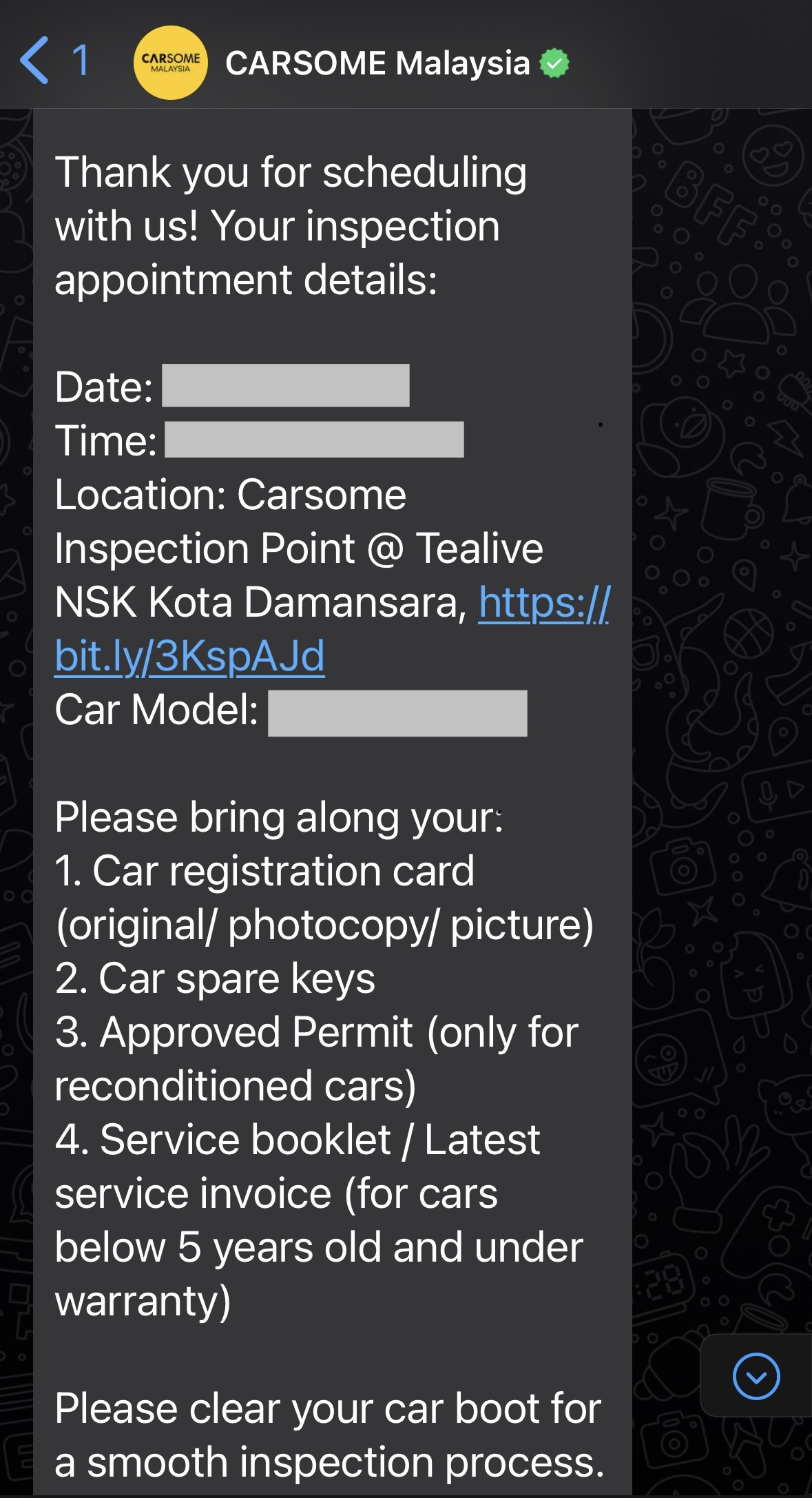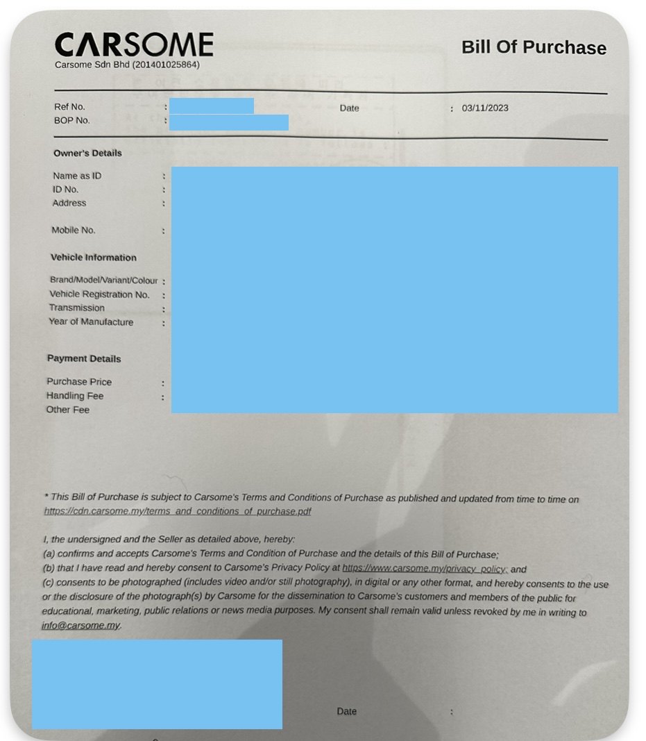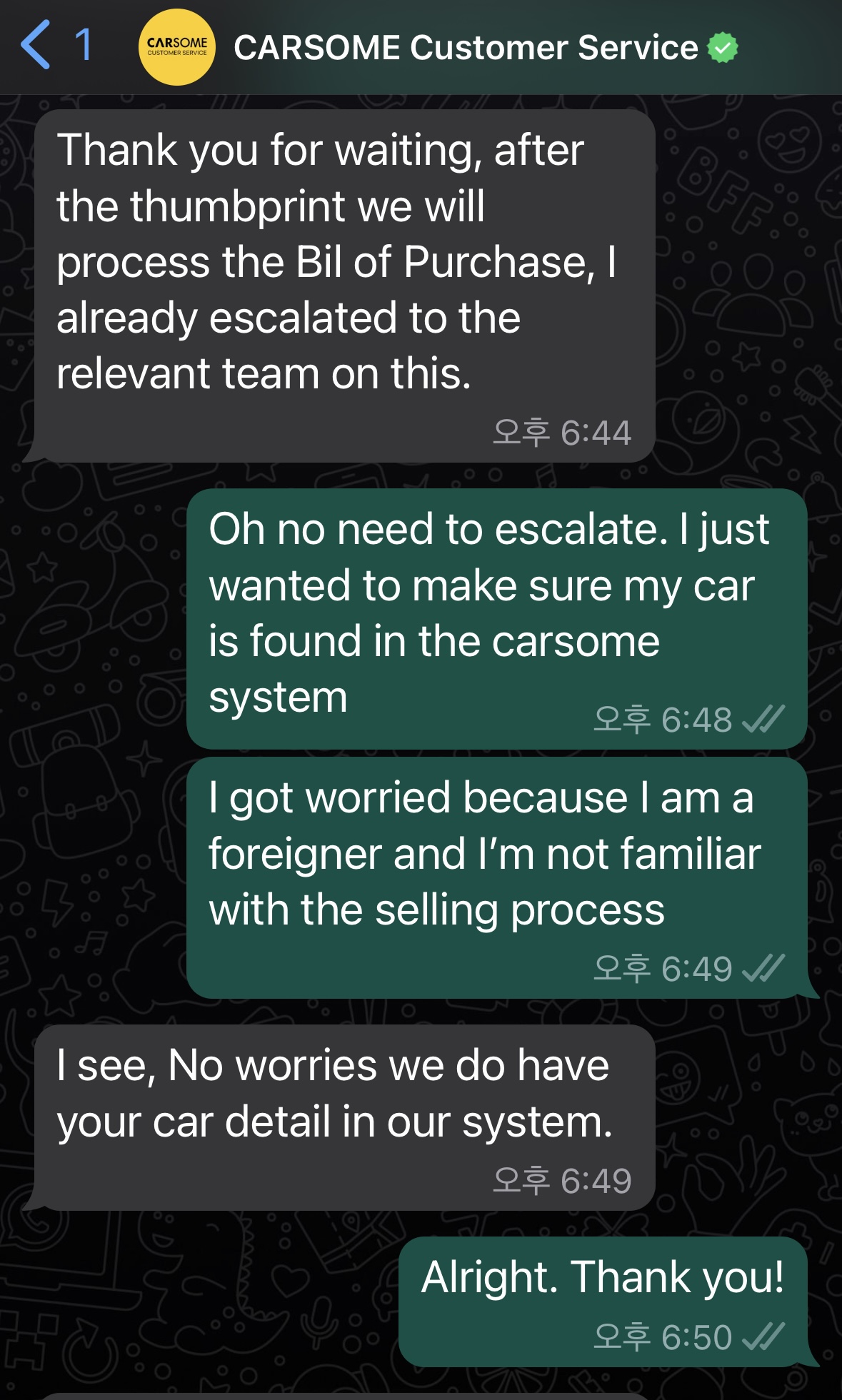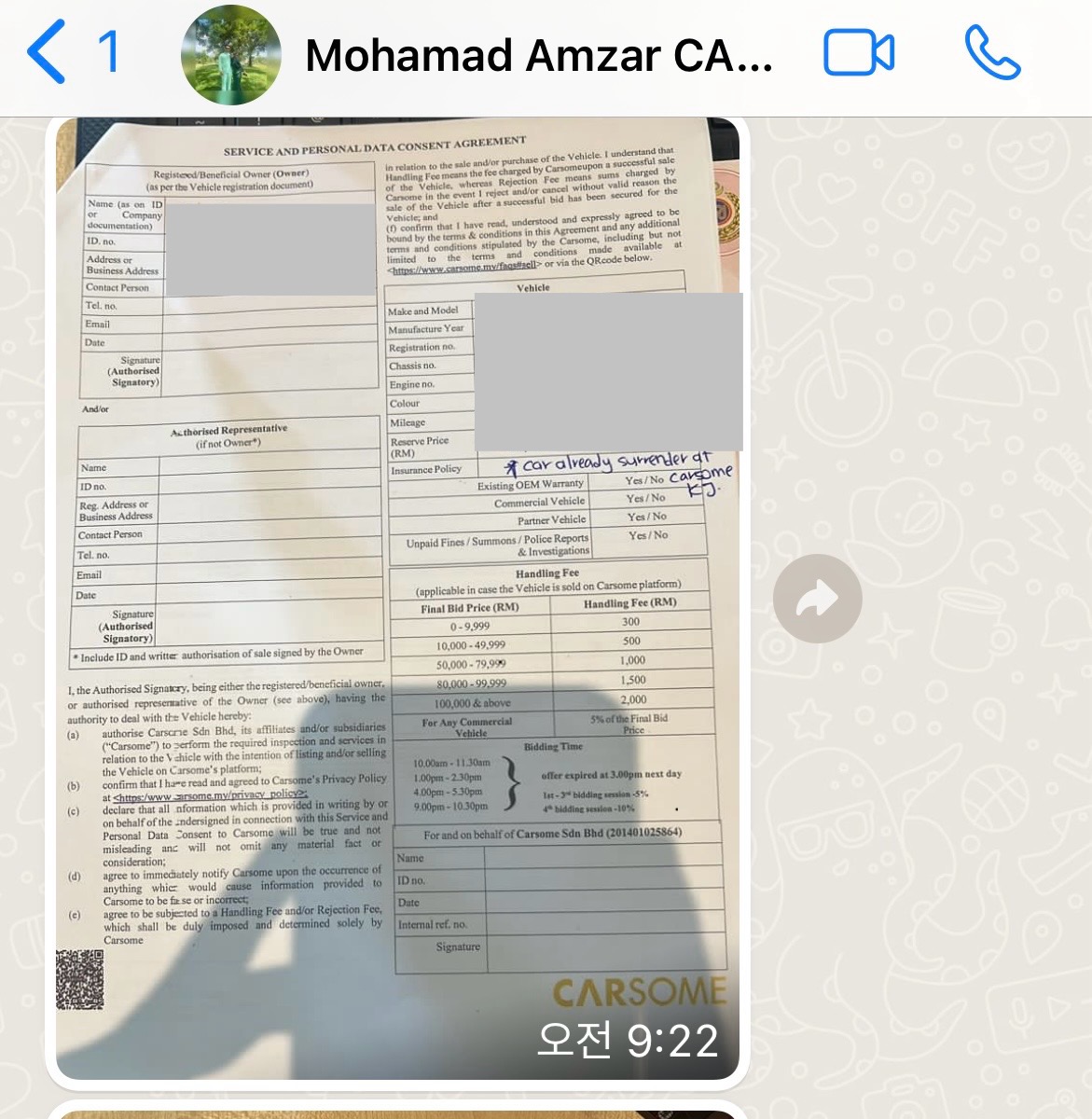 얼마 전에 카썸(Carsome)을 통해 자동차를 처분함