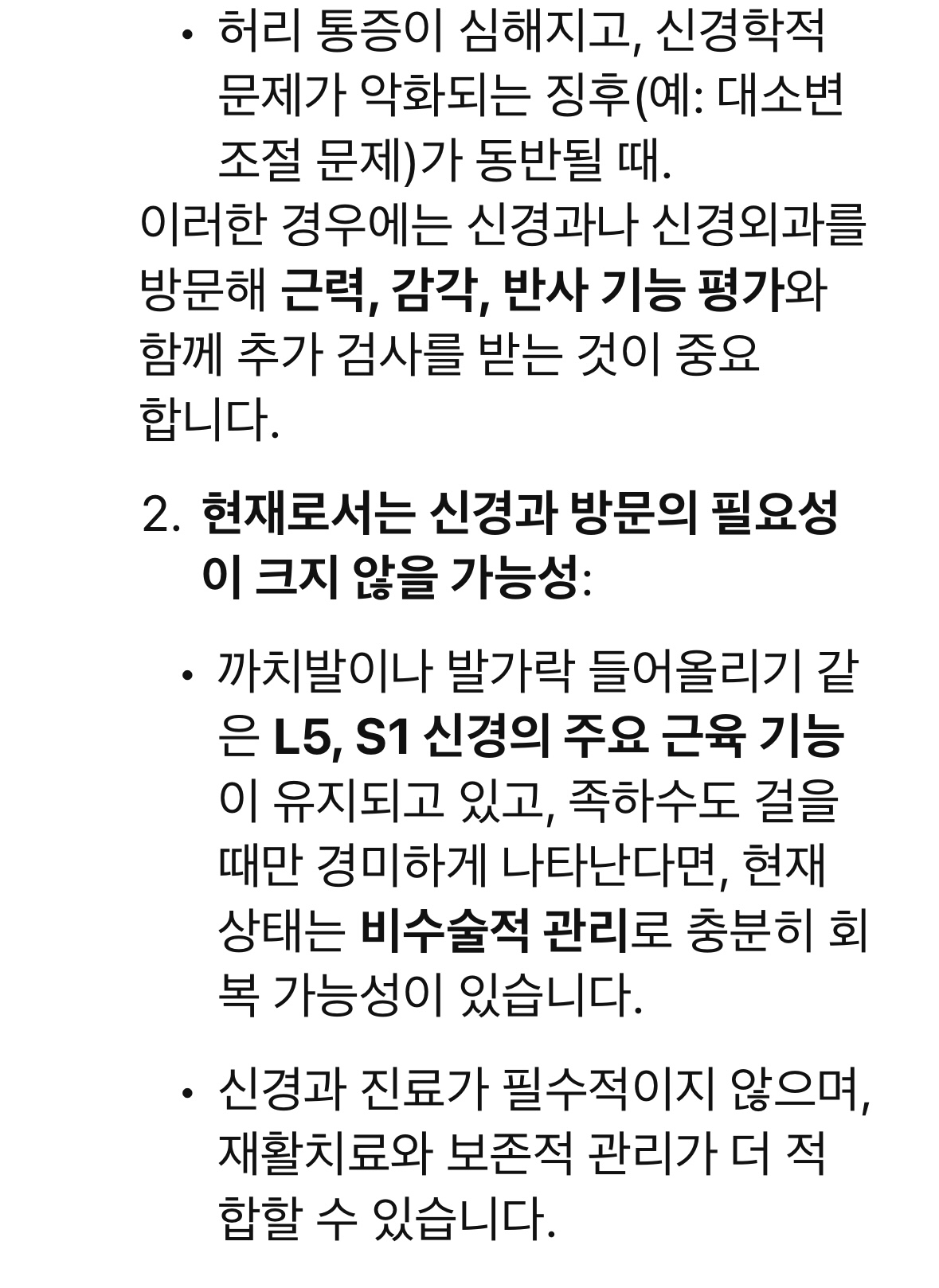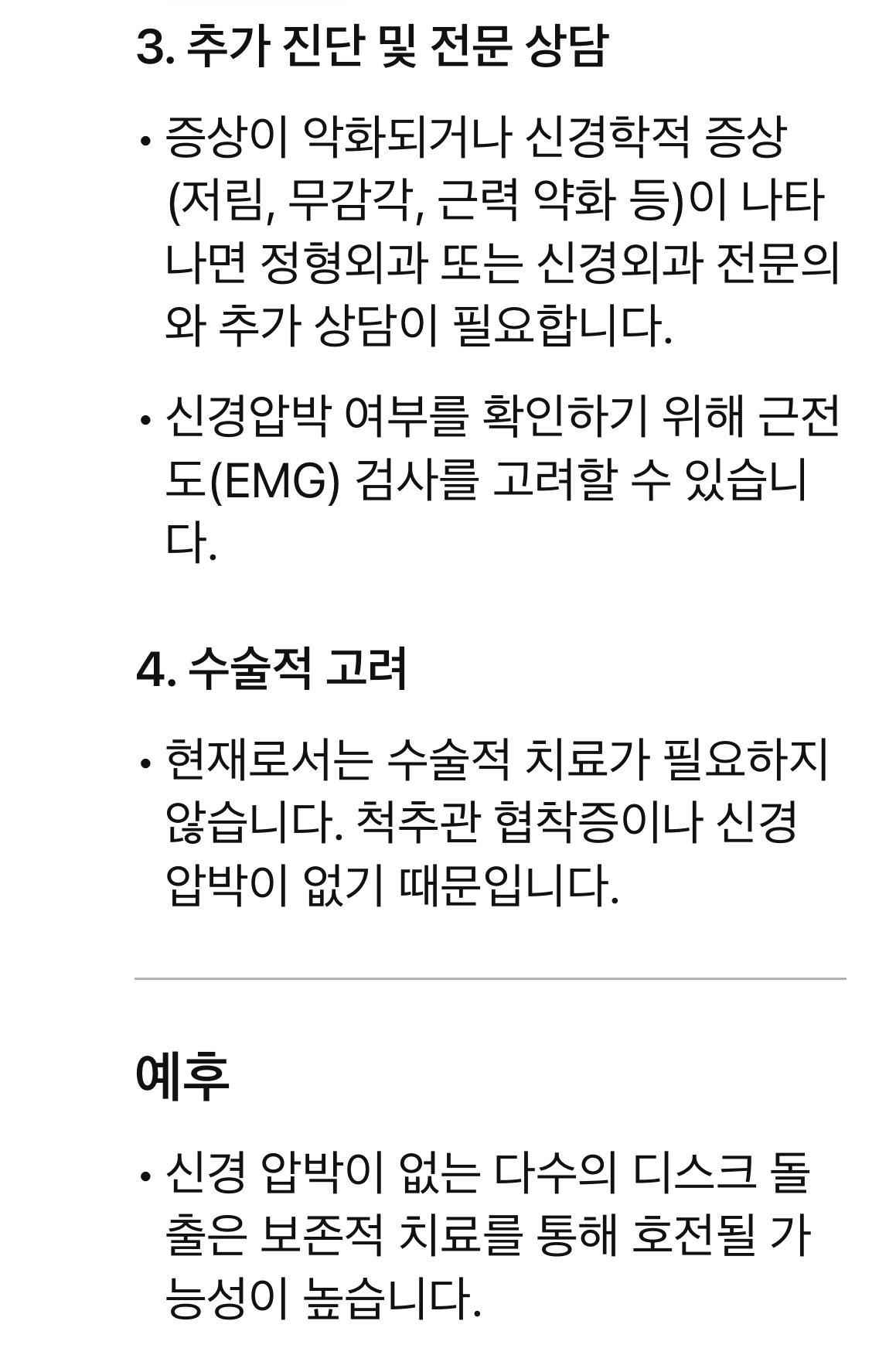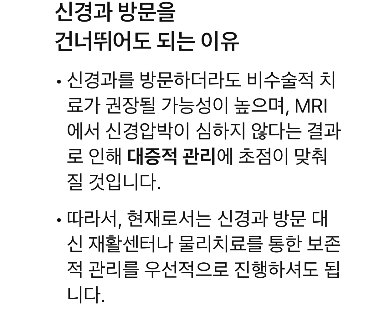 허리디스크로 인한 방사통일 가능성이 높다고 나옴