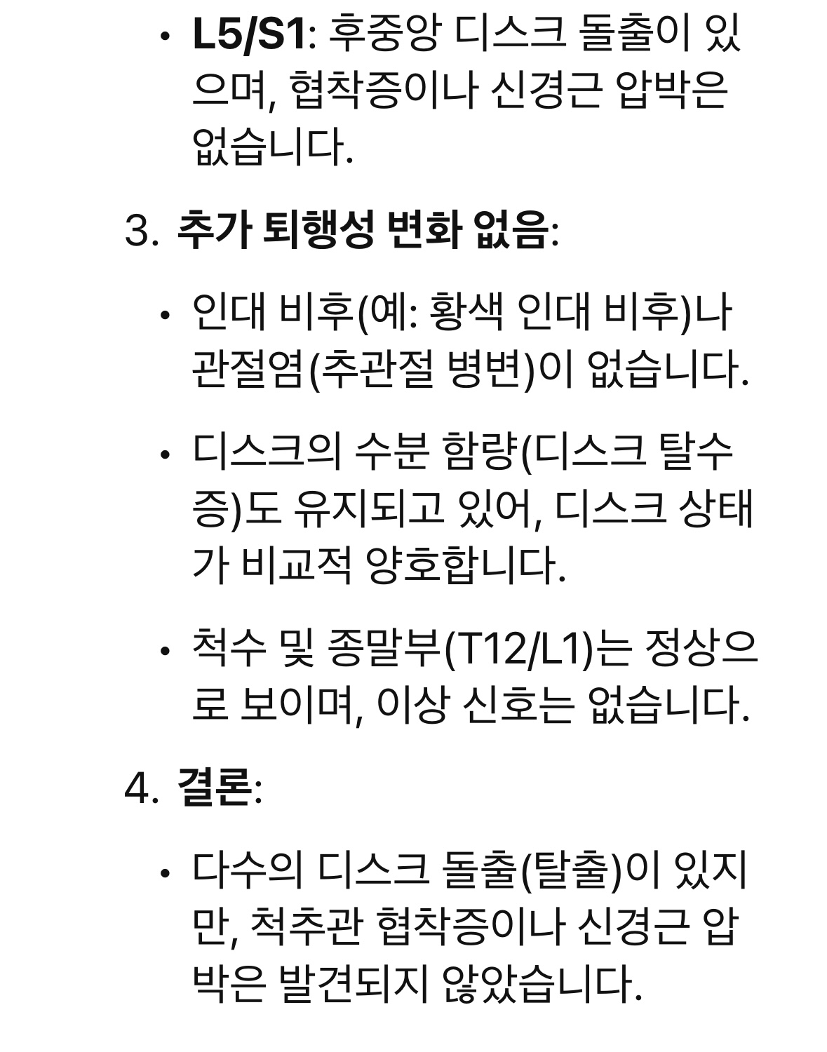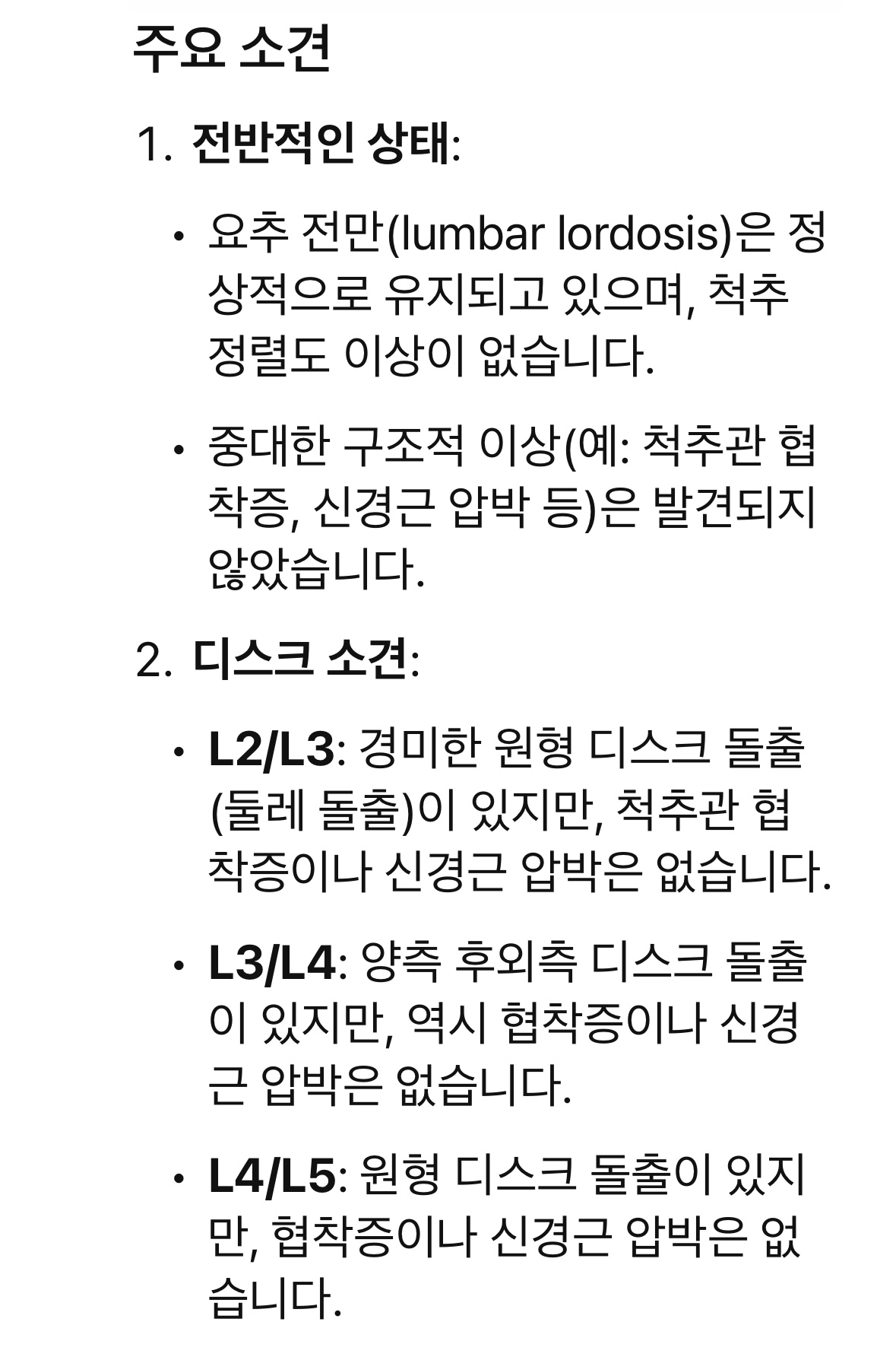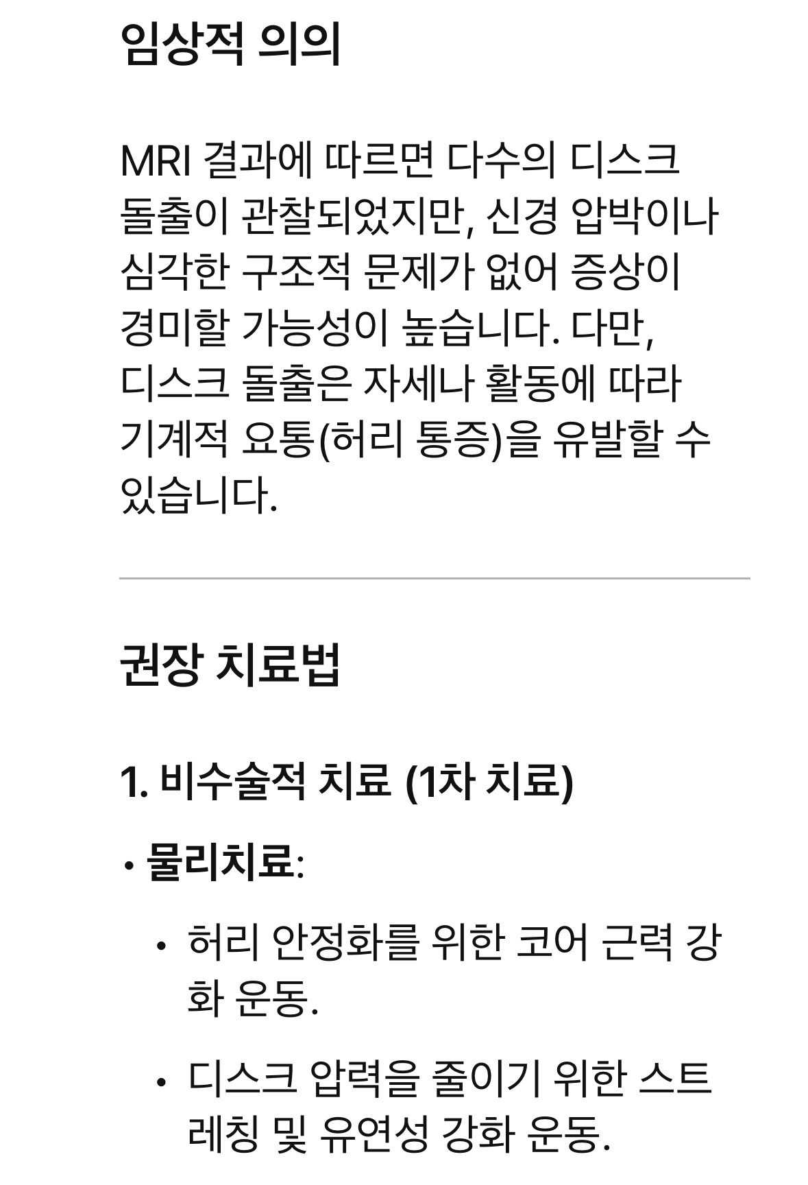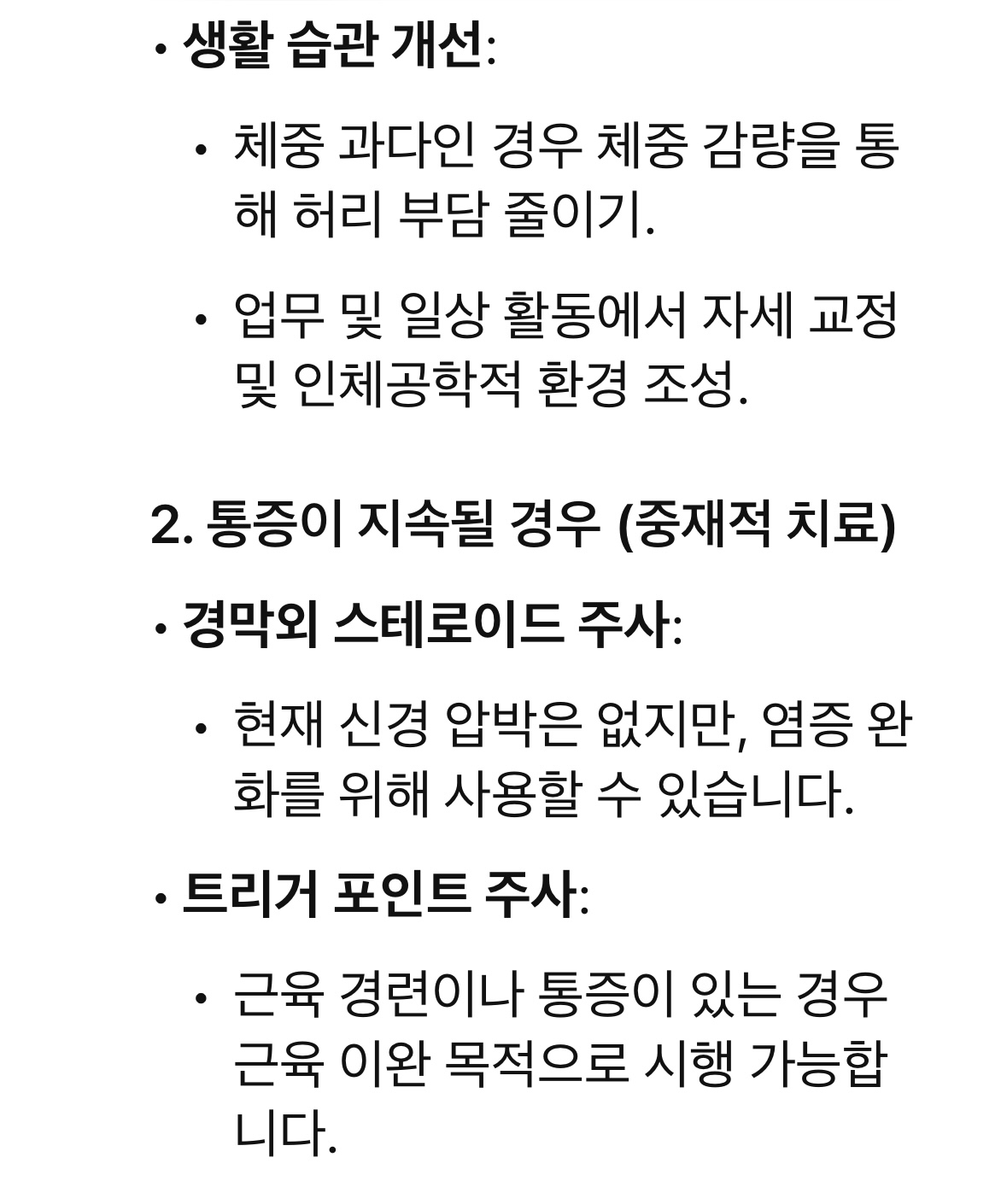 허리디스크로 인한 방사통일 가능성이 높다고 나옴