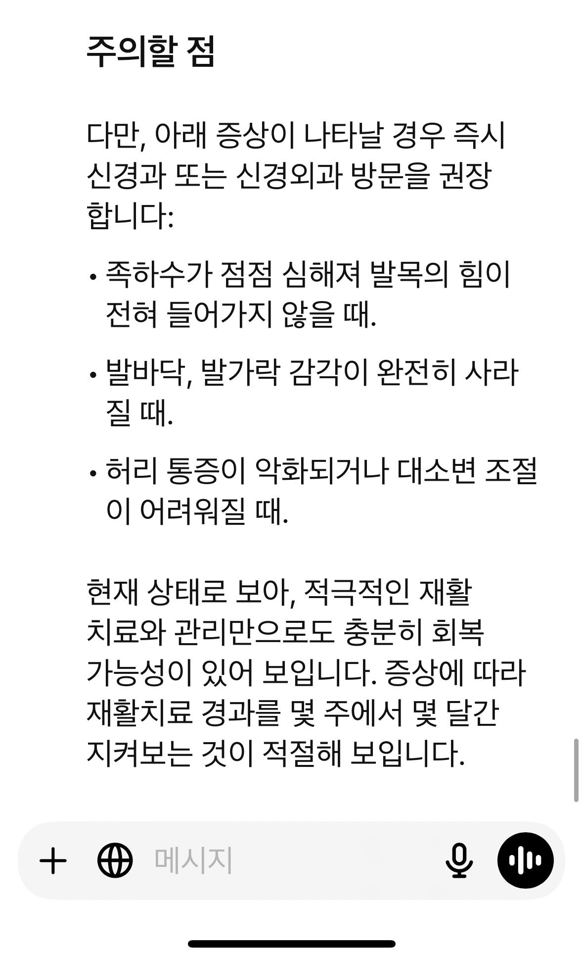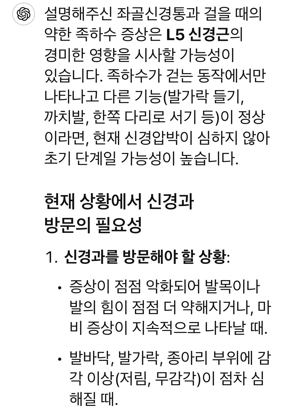 '왼쪽 다리 감각 이상' '왼쪽 발가락 힘빠짐'