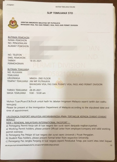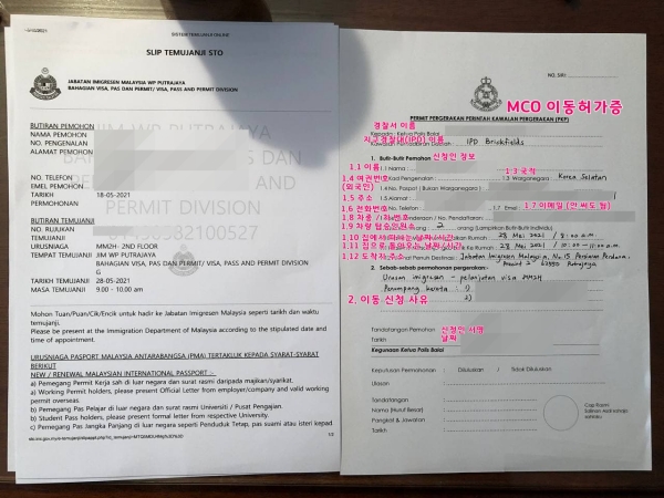 나같은 경우는 이민국 방문 며칠 전에 MCO 기간중이라 방문자 인원 조정을 위해 예약한 사람들이 실제로 올 예정인지 확인을 하고 있다며 이민국으로부터 방문 컨펌 전화를 받았는데, 전화를 안 받았으면 이민국 방문 당일에 허탕을 칠 뻔 했다! 카운터에 가서 예약증을 보여줬더니 MCO라서 방문을 대부분 캔슬시켰다고 하길래 뭔 소리냐 나 이민국에서 와도 된다고 전화 받았다 라고 했더니 아 그래? 하면서 받아줬다.😡 혹시 모를 불상사에 대비해 이민국에 가기 전에 반드시 예약사이트에 가서 방문 CONFIRMATION을 하고 가길 바란다.
